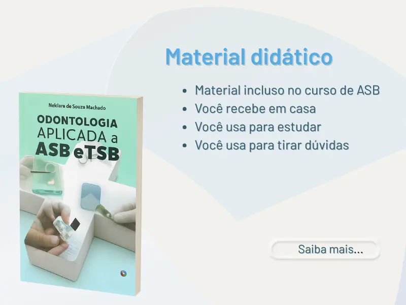 Escrito por uma equipe de Odontólogos, especialmente para o nosso curso de ASB e TSB, o nosso livro além de servir como material didático, também pode ser usado em seu trabalho para tirar dúvidas, bem como em seus estudos para concurso. Você recebe o livro no endereço que cadastra quando realiza a matricula no curso de ASB. Se você já fez o curso de ASB ou o de TSB e precisa de um livro para estudar, entre em contato conosco.